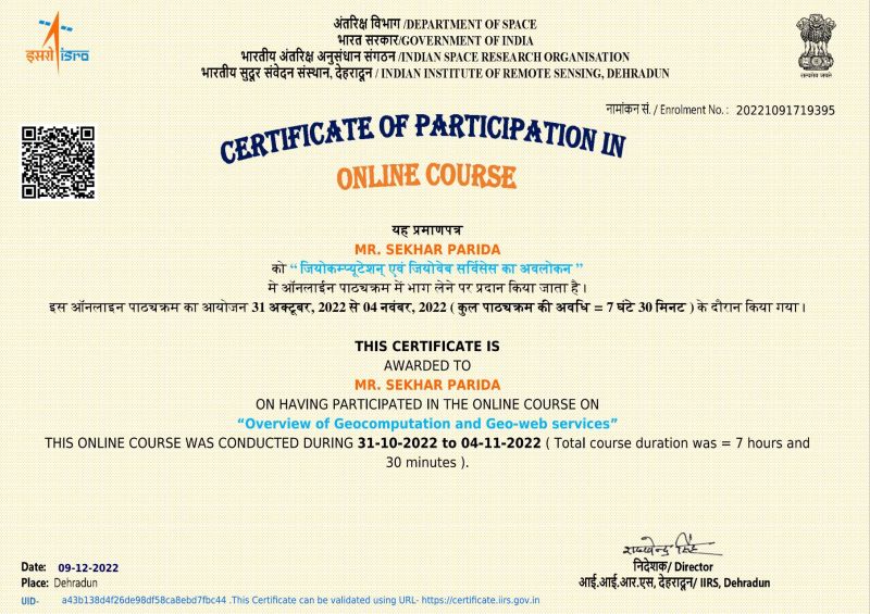 Certificate Of Participation On "Overview of Geocomputation and Geo-web search Services"
